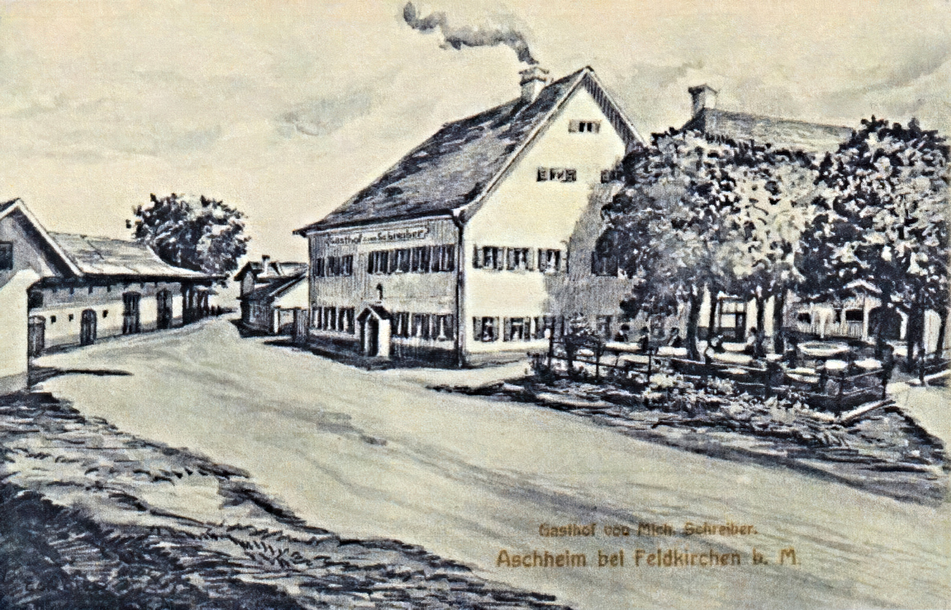 1876 kaufte das Ehepaar Magdalena Schreiber, geb. Westermeier aus Hausen (Kirchheim) und Josef Schreiber die Tafernwirtschaft an der Straße nach Erding vom Leistbräu in München. 1880 wurde der Gasthof mit Metzgerei nach vierjährigen Umbau- und Instandsetzungsarbeiten unter dem Namen Gasthof Schreiber eröffnet. Der Bruder von Magdalena Schreiber, Mathias Westermeier aus Hausen, arbeitete als gelernter Metzger beim Kreuzbräu in München, dem Stammlokal der Münchner Schäfflertanzgruppe.