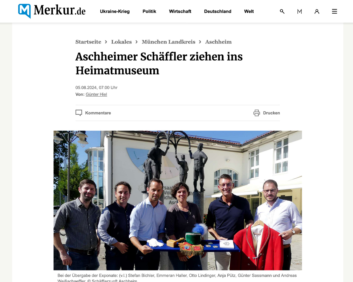 Nach Inbetriebnahme des Gasthof Schreiber 1880 wechselte Mathias Westermeier nach Aschheim zu seiner Schwester Magdalena und Schwager Josef und übernahm als Angestellter die Metzgerei Schreiber. Der Bruder Franz Westermeier kam ebenfalls nach Aschheim und wurde als Schweizer (Melker) angestellt. Da Mathias Westermeier, von seiner Zeit als Metzger im Kreuzbräu München, dem Stammlokal der Münchner Schäffler, von deren Auftritten nachhaltig so inspiriert war, beschloss er, mit Unterstützung seines Bruder Franz, seiner Schwester Magdalena und seinem Schwager Josef Schreiber, den Tanz, nach Münchner Vorbild nach Aschheim zu übertragen und eine Schäfflertanzgruppe zu gründen.